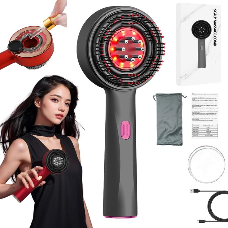 Descubra el peine eléctrico para masaje capilar, una innovadora herramienta que combina masaje, fototerapia roja y aplicación de aceites capilares para estimular el crecimiento del cabello, reducir su caída y mejorar la salud general del cuero cabelludo.